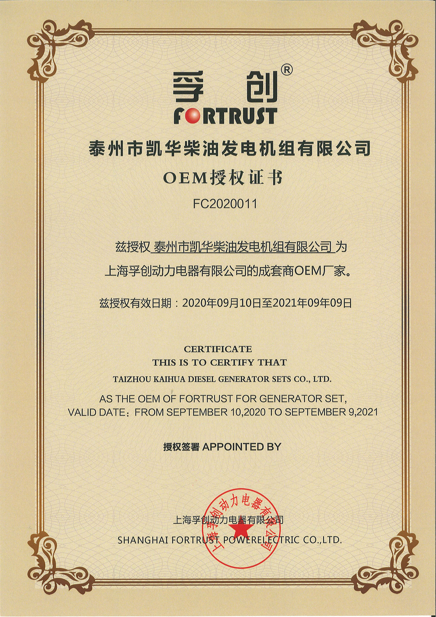 孚創(chuàng)OEM證書
