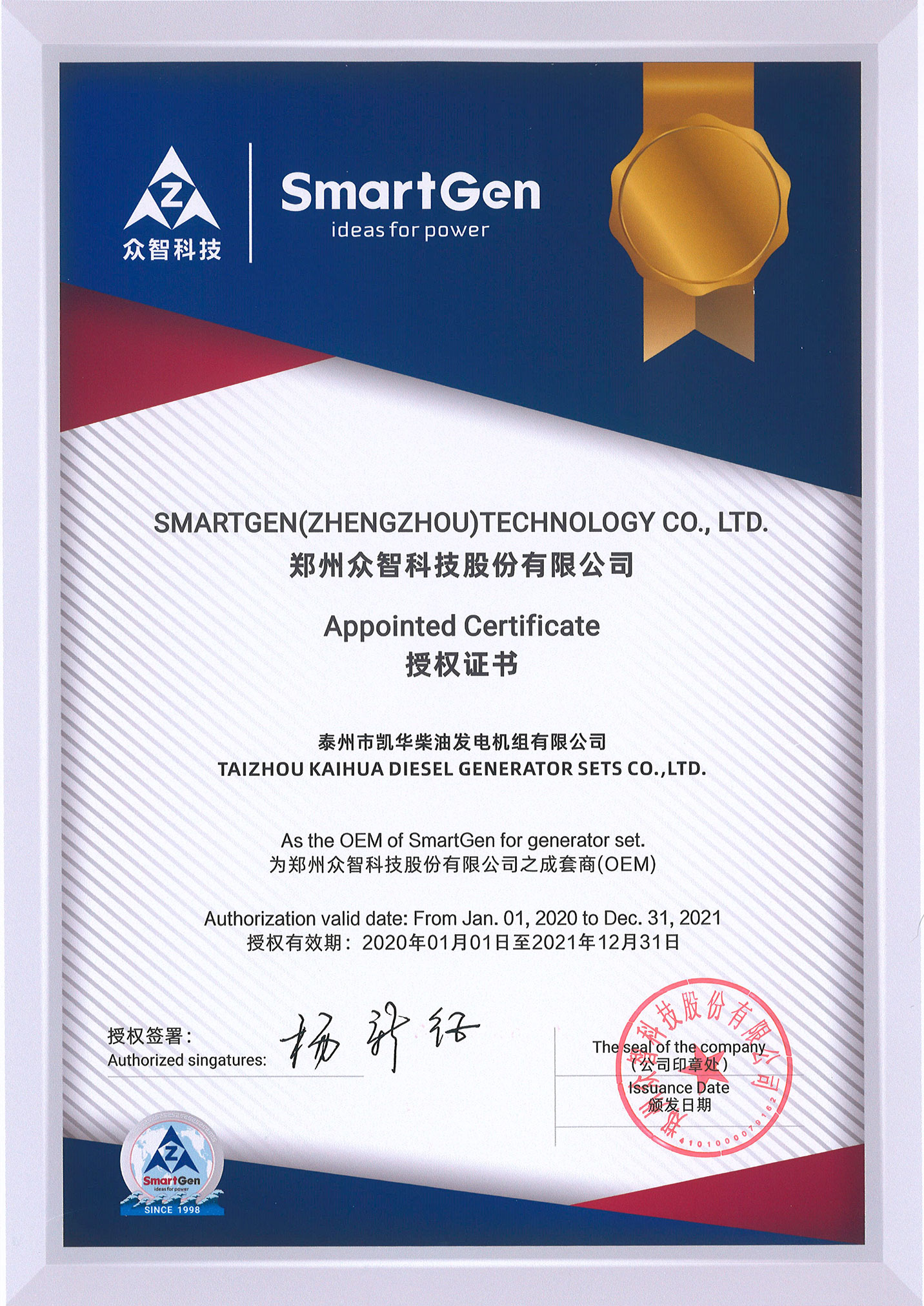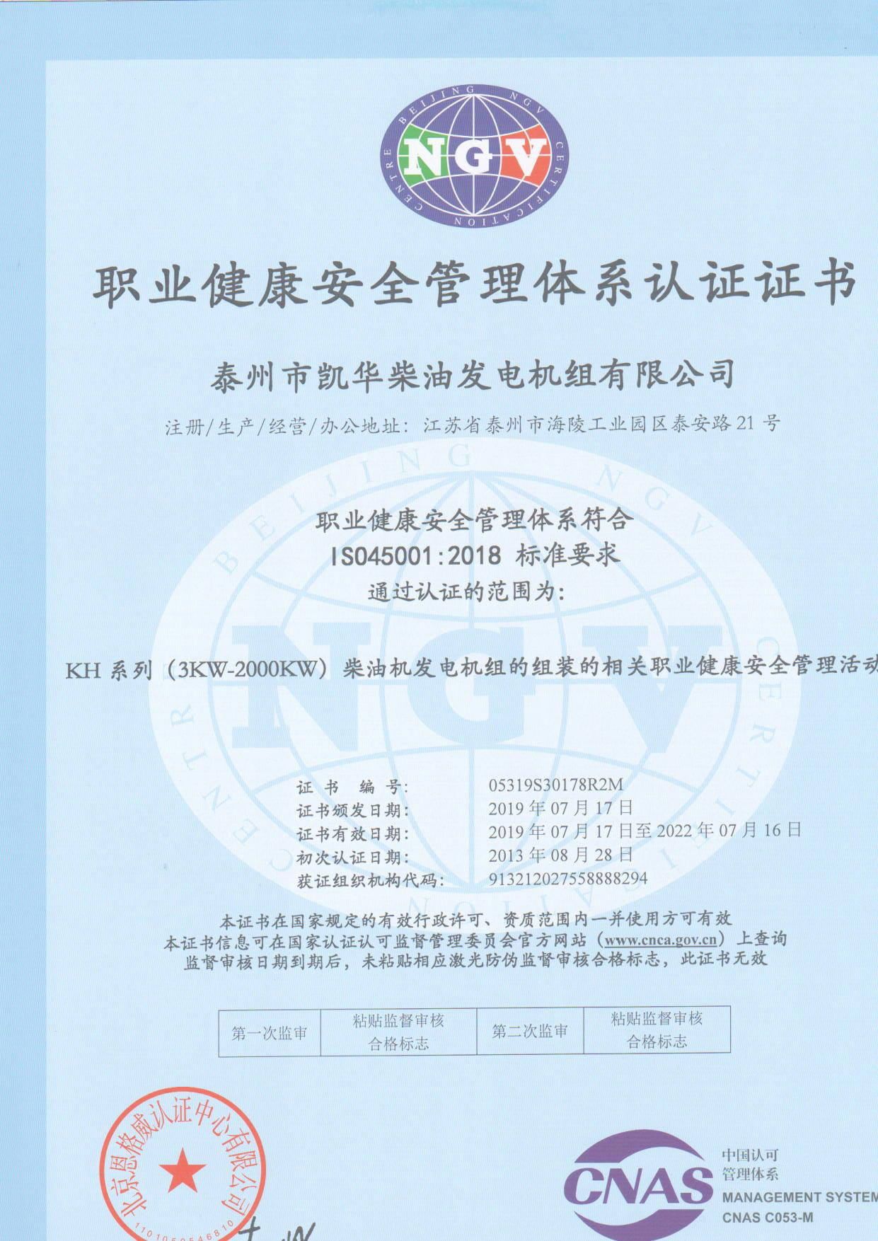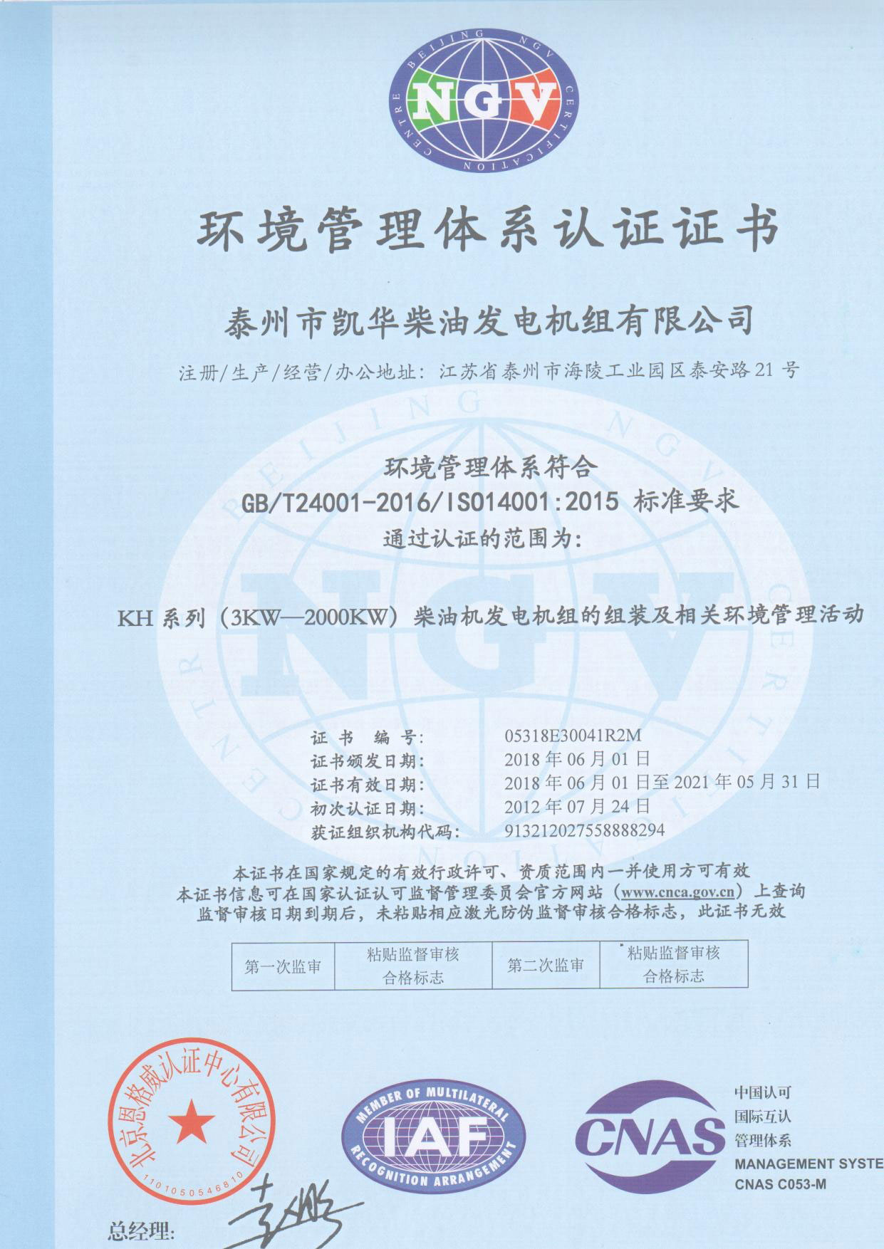 發(fā)電機組廠家凱華公司已先后通過ISO9001質量認證、泰爾認證、ISO14001-2001環(huán)境管理體系認證、GB/T28001-2001職業(yè)健康安全管理體系認證,歐盟CE認證、SGS認證等。