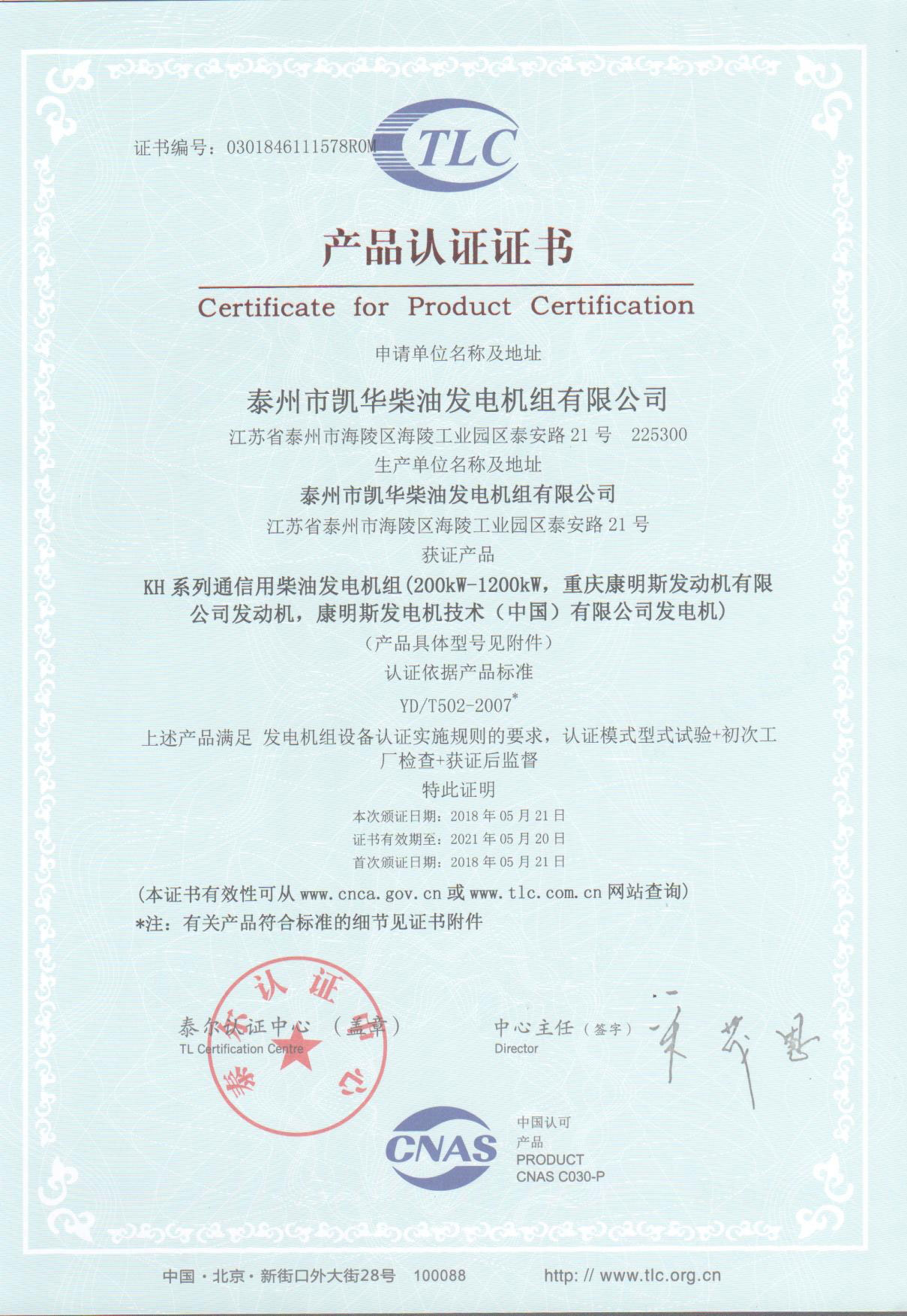 泰州市凱華柴油發(fā)電機組有限公司創(chuàng)建于2003年,是一家集柴油發(fā)電機組的研發(fā)、生產、銷售為一體的高新技術民營企業(yè),公司目前注冊資本金11800萬元人民幣,生產基地占地六十畝,現(xiàn)有各類高素質員工一百多名,專業(yè)技術人員達46人,其中高級技術人員16人,年銷售額近6億元。公司主營產品:3~3000KW陸用柴油發(fā)電機組,15~600KW移動拖車電站,12~1000KW船用應急柴油發(fā)電機組,各種靜音型、中高壓、多機并聯(lián)、燃氣等特種機組以及進口系列柴油發(fā)電機組,可滿足不同客戶的不同電力需求,還可滿足用戶不同電壓、不同頻率的要求。